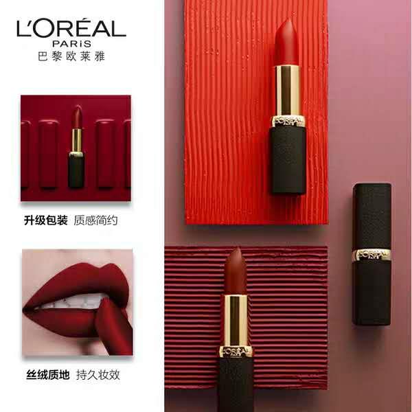 欧莱雅笑色唇膏,设计师限量版,质地丰润,哑光雾感,滋润显白,上唇十分持久。