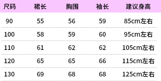 参考身高: 90cm 100cm 110cm 120cm 130cm