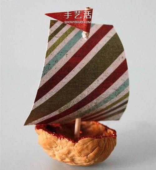 利用核桃壳,制作可爱小帆船!