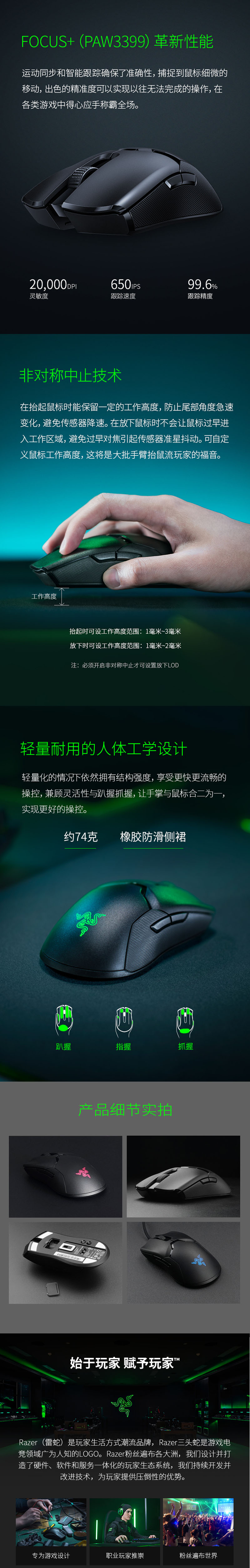 • 商品名称:Razer雷蛇毒蝰终极版轻量无...