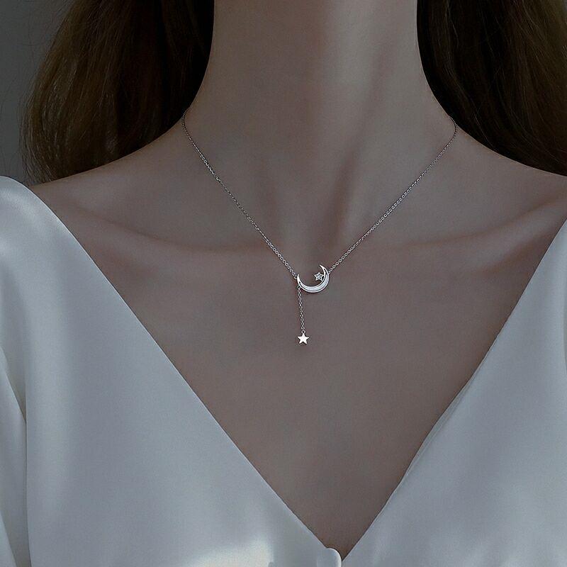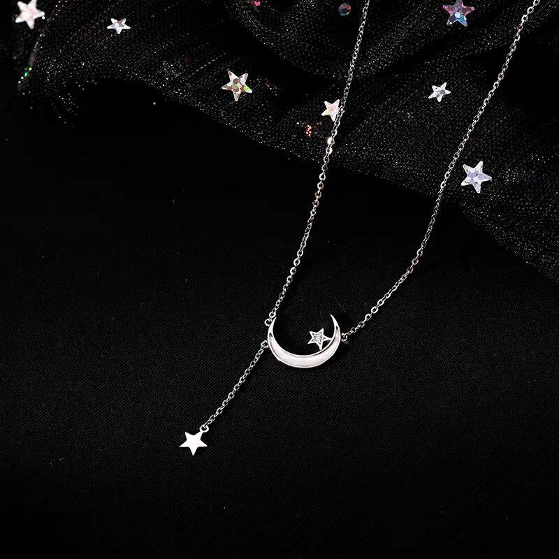 925纯银星星月亮流苏项链