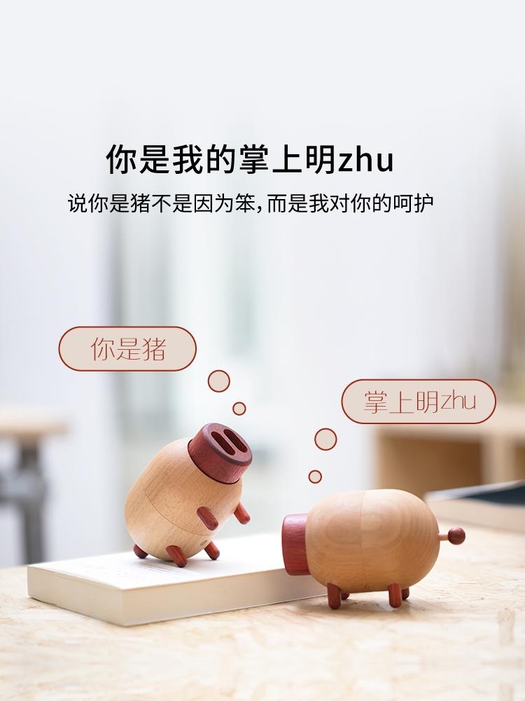树德小猪音乐盒八音盒木质天空之城手工diy情侣送女生日礼物创意
