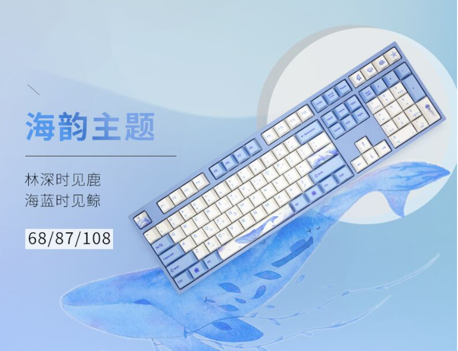 •  商品名称:ldjx鲸落海韵主题键盘  办公游戏 机械键盘 海韵VA108键有线 cherry轴无灯