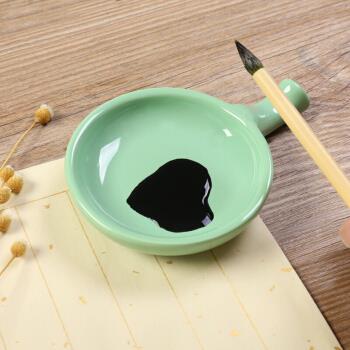 精品4寸陶瓷绿色墨碟 陶瓷笔架水碟小砚台 文房四宝多功能笔搁笔置毛笔架子