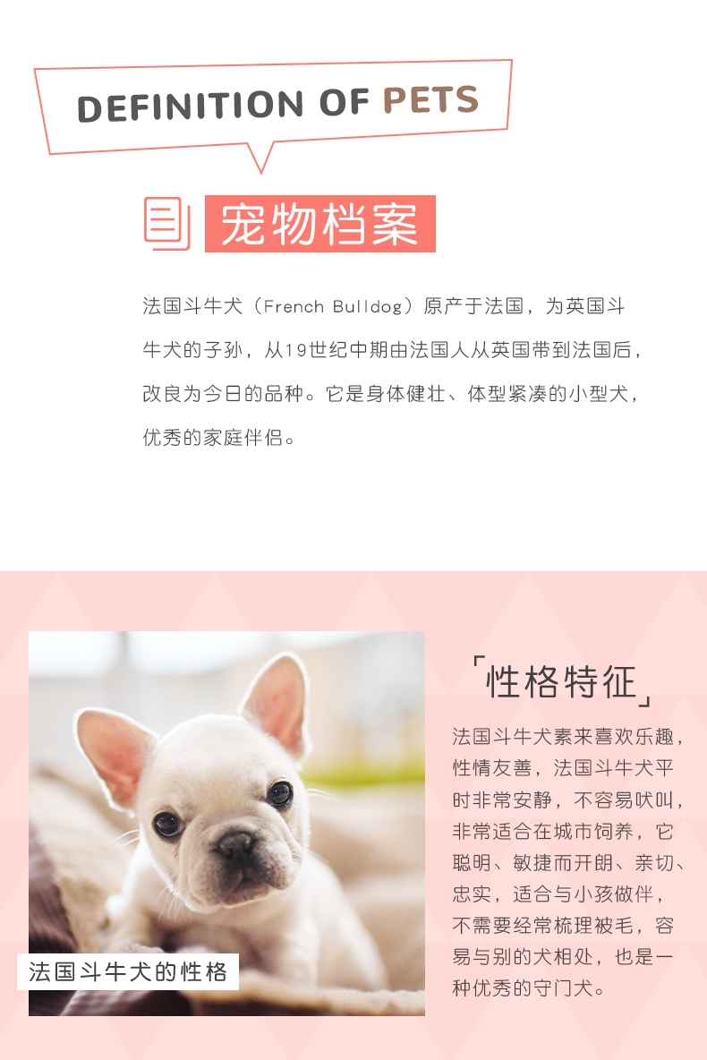 法国斗牛犬是身体健壮、体型紧凑的小型犬,优秀的家庭伴侣,但它没有与主人的边界感,甚至闹着要分享主人最心爱的座椅。该犬素来喜欢乐趣,性情友善,但需要严格指导。