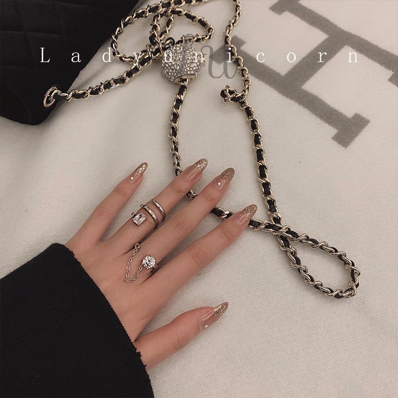 原创个性ins冷淡风螺旋关节戒单钻链条吊坠开口戒指女