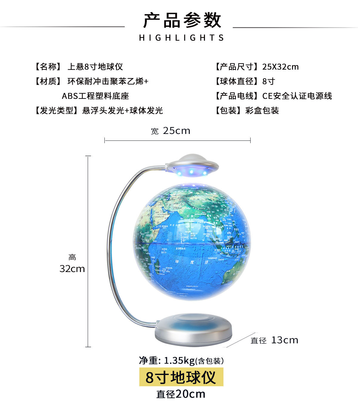 • 商品名称:新款磁悬浮地球仪8寸自转8...