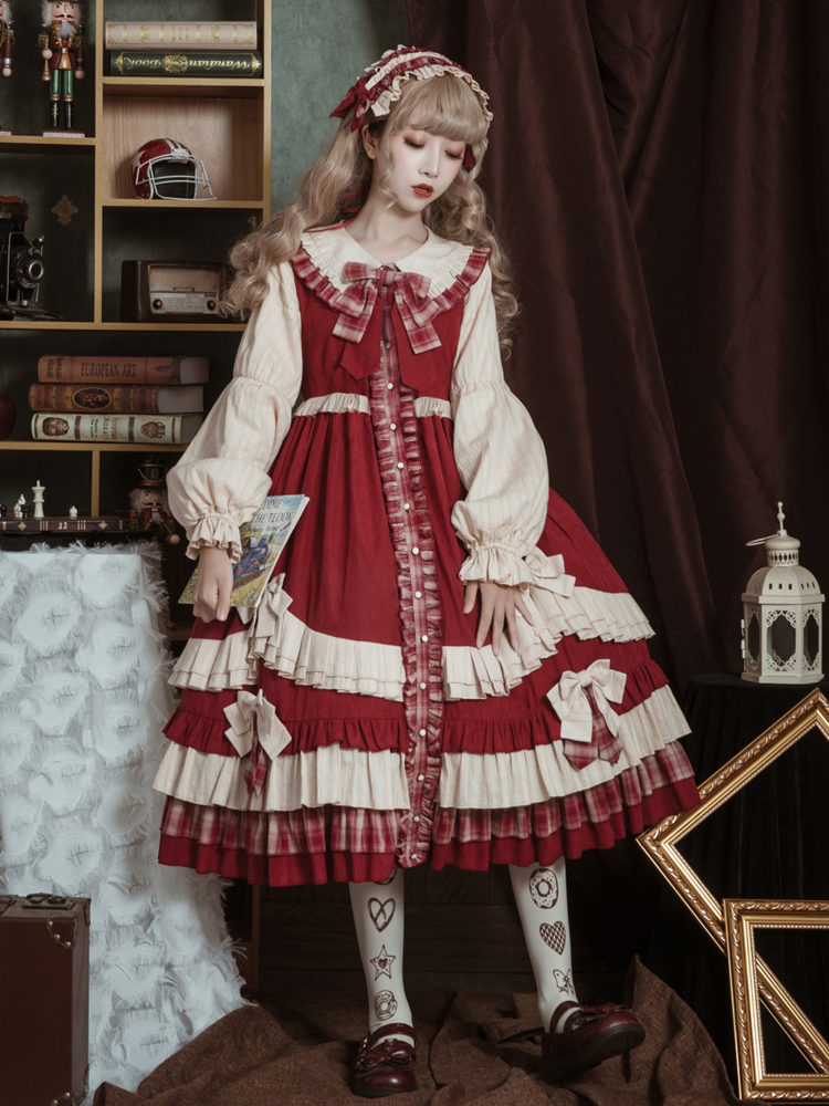 动漫周边 > 服饰 > 原创小红帽的篮子lolita新年红洛丽塔可爱蝴蝶结少女OP长袖连衣裙