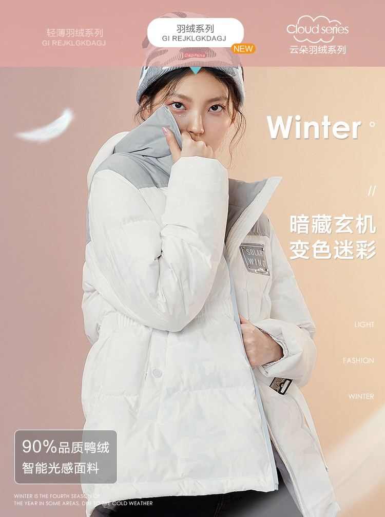 森马羽绒服女短款爆款2020冬季新款女士潮感厚外套遇光变色羽绒衣