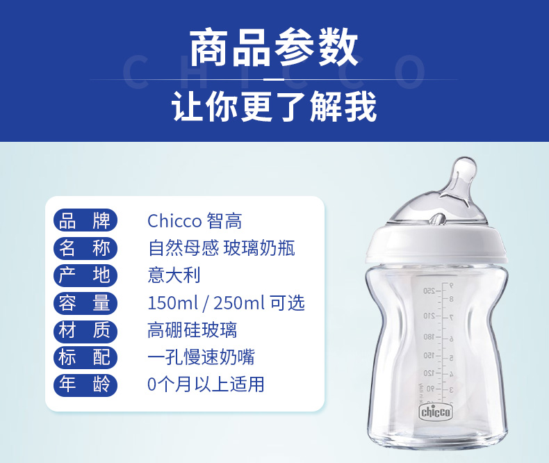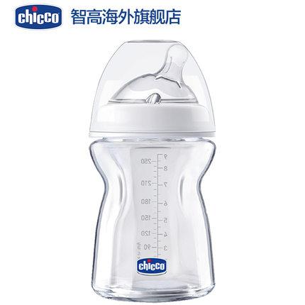 意大利chicco智高新生婴儿自然母乳宽口径玻璃奶瓶宝宝防摔爆胀气