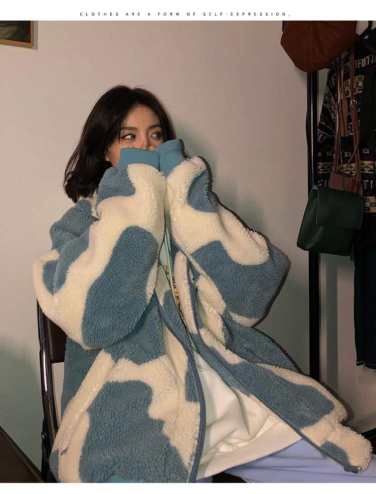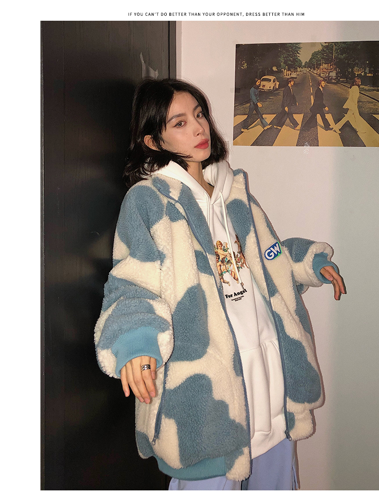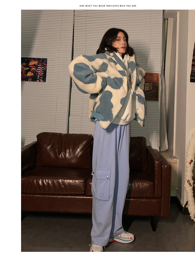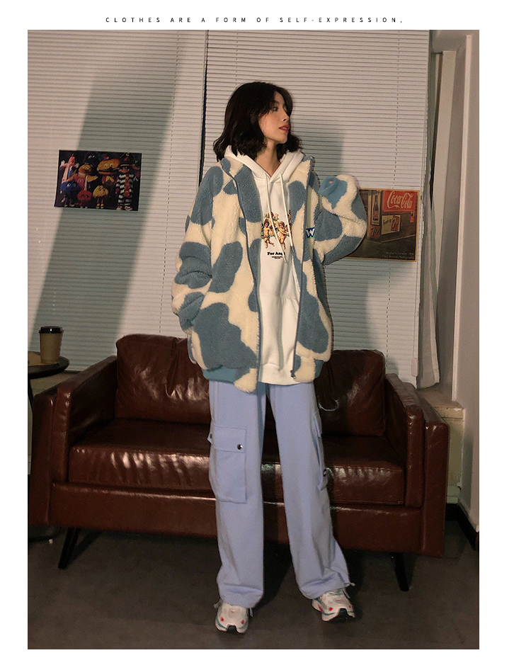 动漫周边 > 服饰 > 蓝色羊羔绒开衫外套女2020冬季新款宽松港味原宿加厚棉服