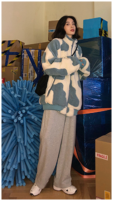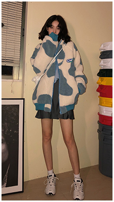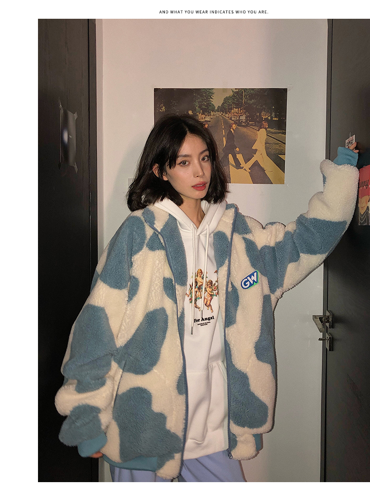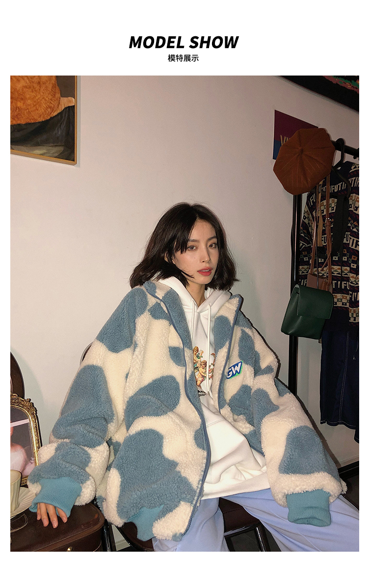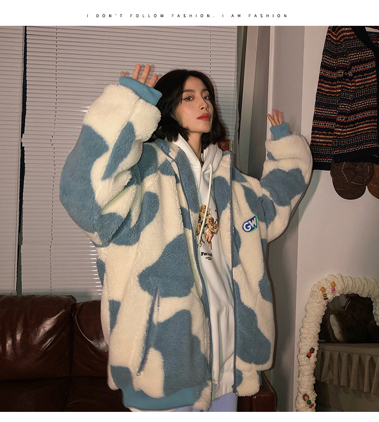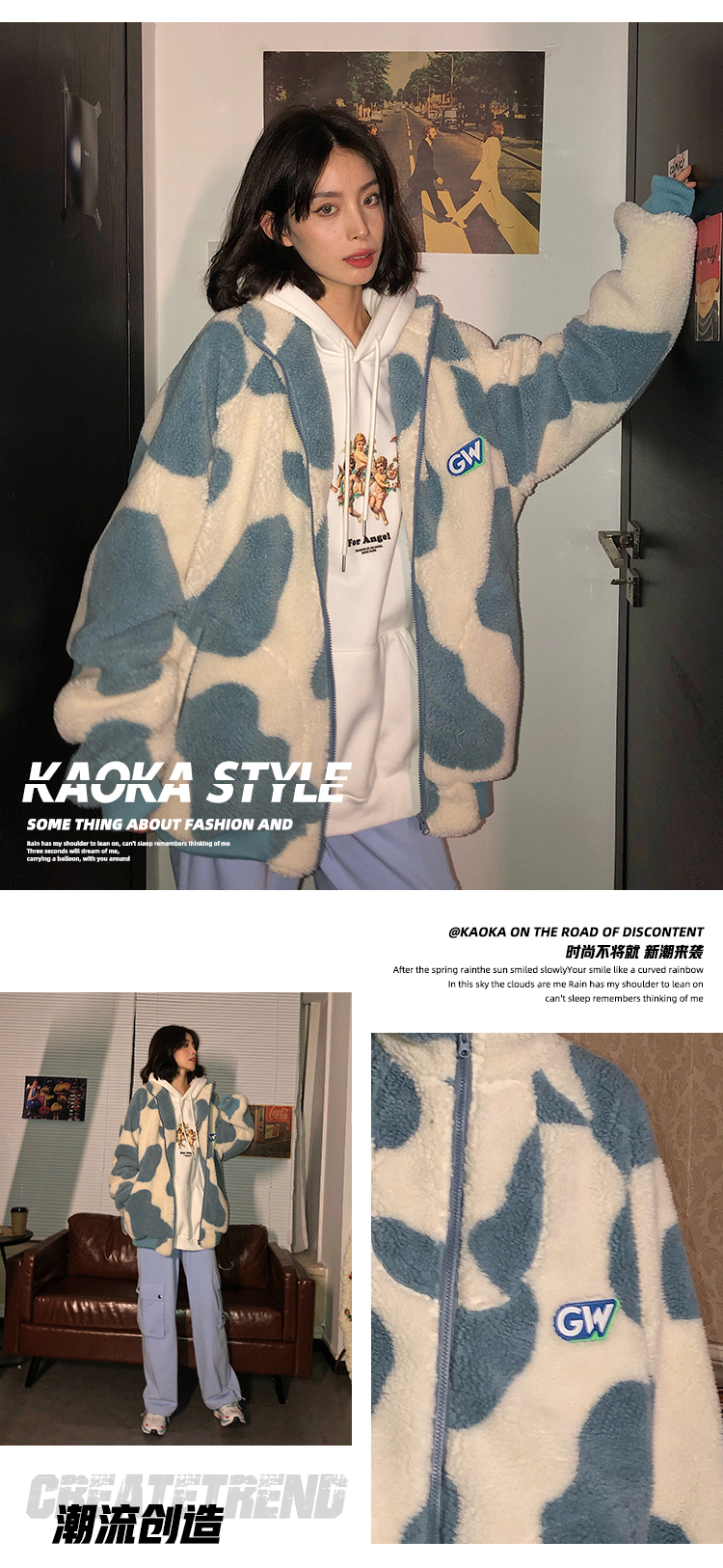 动漫周边 > 服饰 > 蓝色羊羔绒开衫外套女2020冬季新款宽松港味原宿加厚棉服