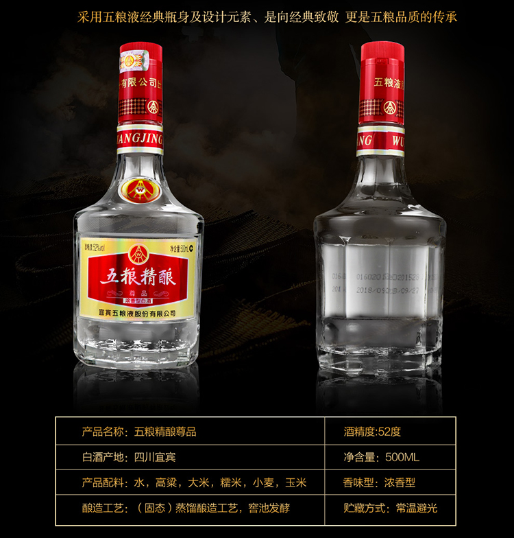 • 商品名称:五粮液精酿尊品52度500ml浓...