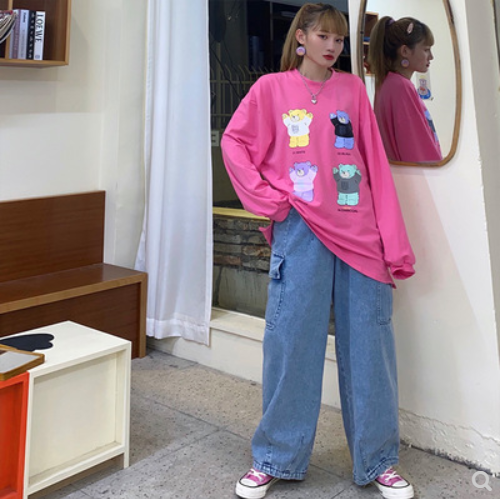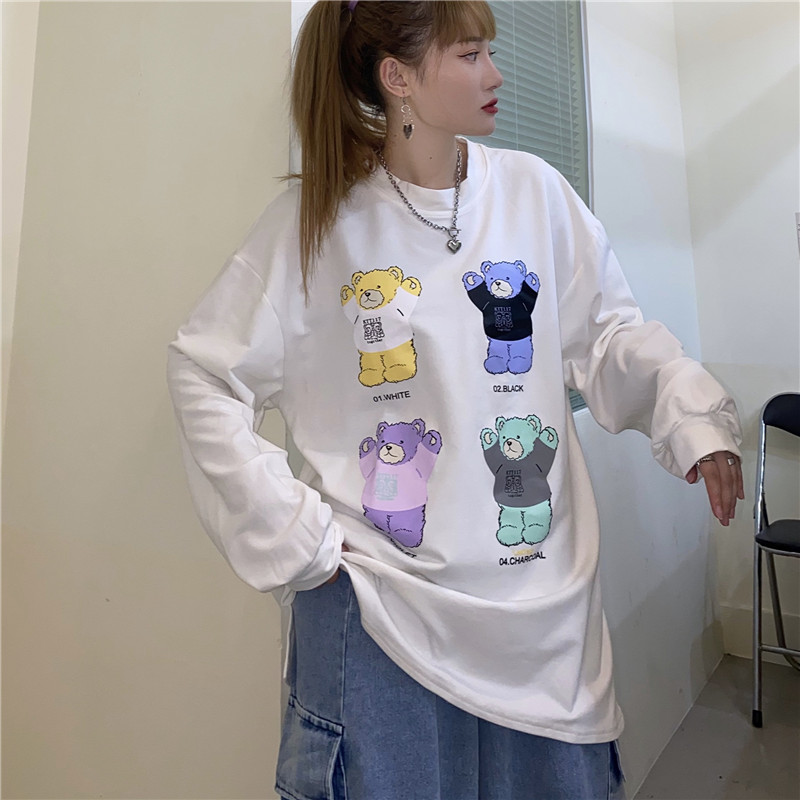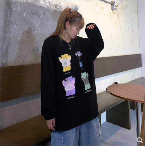 动漫周边 > 服饰 > 林星星纯色休闲少女风四只小熊长袖t恤宽松百搭初秋上衣新品2020