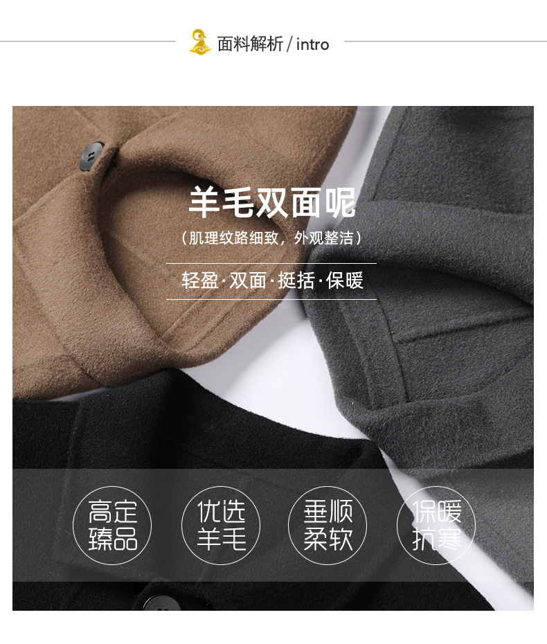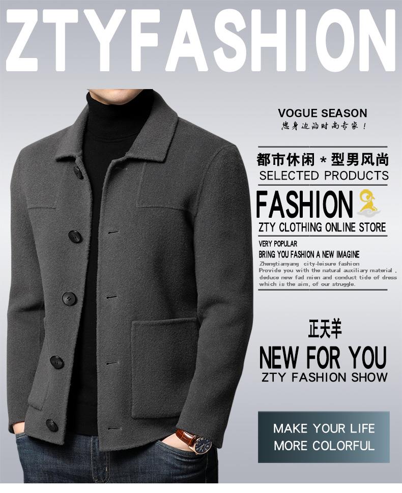 2020秋冬季翻领100%纯羊毛双面毛呢短款大衣男商务呢子男装外套潮