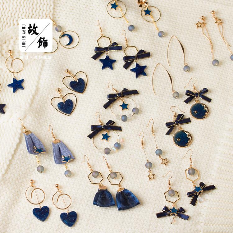 星空幻想系列耳环合辑 INS网红款星座星星深蓝色夜空银河系耳环耳夹