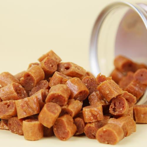 本商品由鸡肉、淀粉、植物甘油、植物蛋白、奶酪、海藻糖、食用盐组成,粗蛋白质〉25%,美味营养。