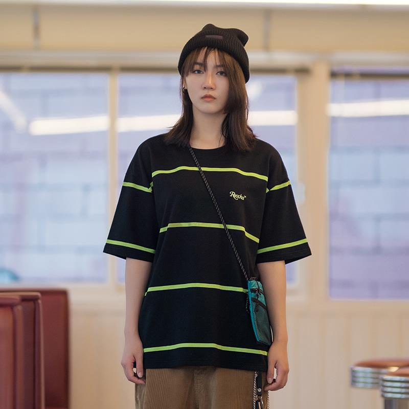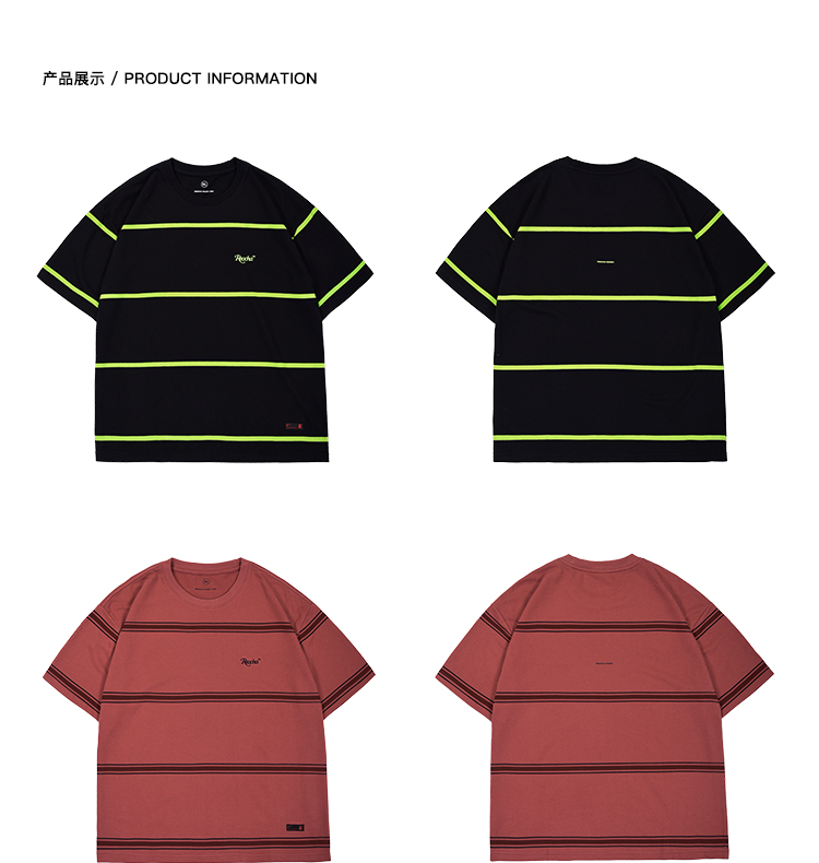 i潮REOCHA热呈19ss宽间距条纹短袖国潮街头宽松潮流半袖男女情侣T