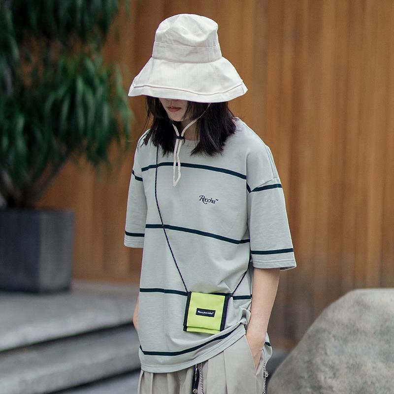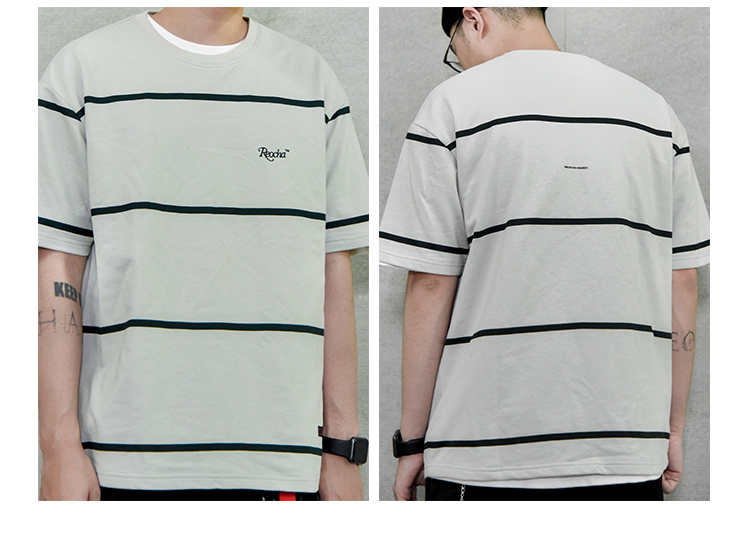 动漫周边 > 服饰 > i潮REOCHA热呈19ss宽间距条纹短袖国潮街头宽松潮流半袖男女情侣T