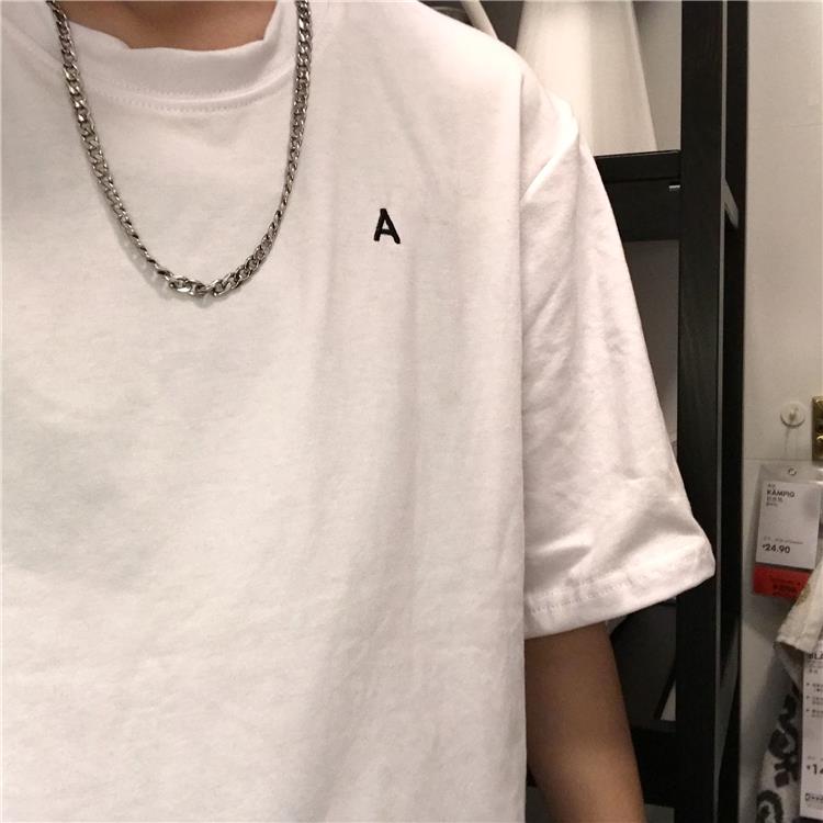 动漫周边 > 服饰 > 韩国同款复古简约小字母刺绣短袖T恤 21ss男女款