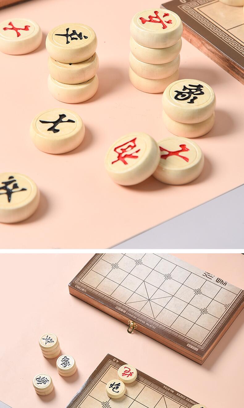 中国象棋使用方形格状棋盘,圆形棋子共有32个,红黑二色各有16个棋子,摆放和活动在交叉点上。双方交替行棋,先把对方的将(帅)“将死”的一方获胜。