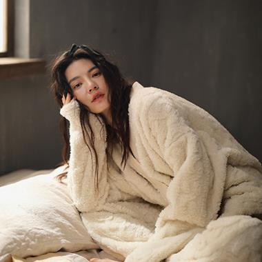 该居家服整体面料透气干爽、吸湿吸汗、呵护恒温、健康卫生。质量保证,保暖性强。