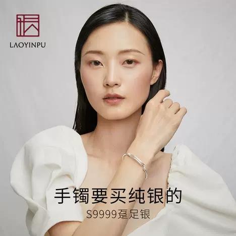 古法银手镯女纯银9999足银镯子学生银镯推拉生日礼物银饰简约实心