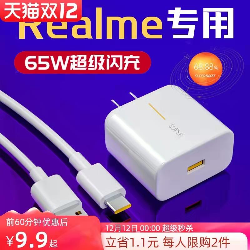 适用Realme真我Q2Pro充电器头65W瓦真我GTneo快充插头X50/X7pro超级闪充数据线原装superQ3pro闪充即拍诚正品