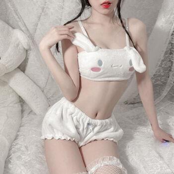 日系可爱软妹珊瑚绒睡衣少女甜美萝莉无钢圈内衣加绒套装冬【12月9日发完】 玉桂狗白色 M(80-100斤以内)