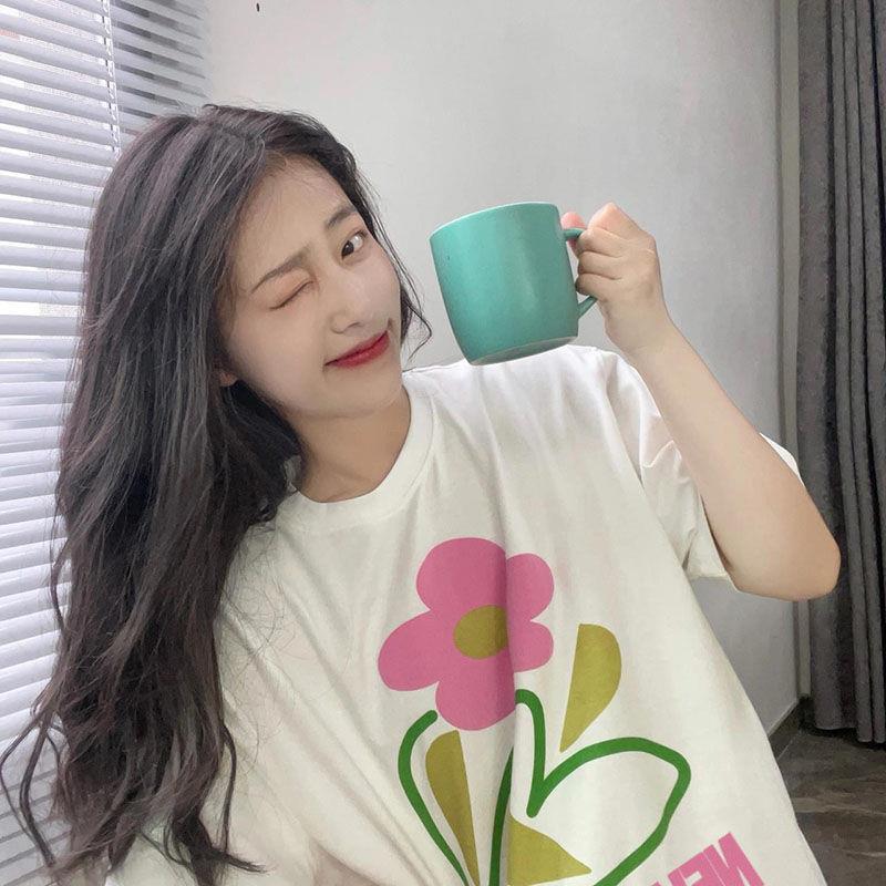 ins超火花朵印花t恤女夏季100%纯棉日系奶甜短袖学生宽松原宿风潮