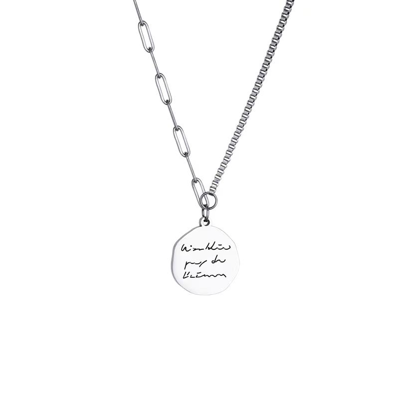 和基础款项链相比,圆牌项链的用料和设计更加丰富