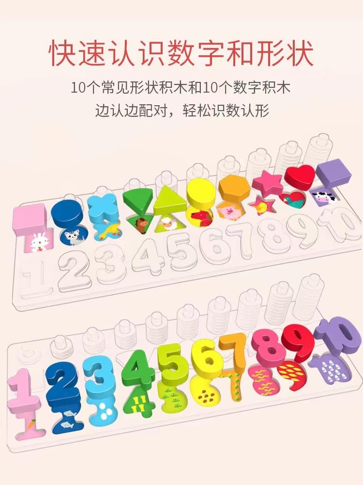 通过对应的积木的形状,排序,能够潜意识的让宝宝在玩游戏的过程中认识到数字,提高宝宝对数字的概念。同时也增加宝宝的抓握能力。