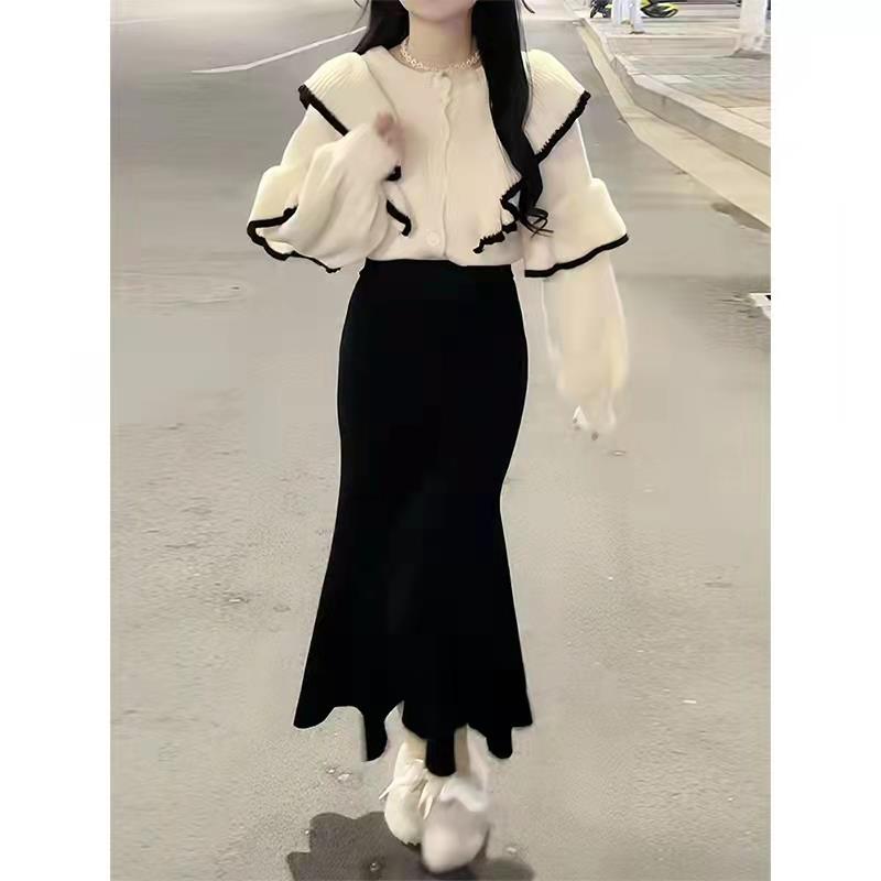 商品名称:JVH 香港潮牌高腰纯色宽松阔腿裤套装女 2022秋季新款复古名媛气质蝴蝶结系带长袖上衣两件套 图片色(套装) M