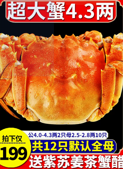 公蟹规格:4两母蟹规格:2.5两母蟹只数:10只