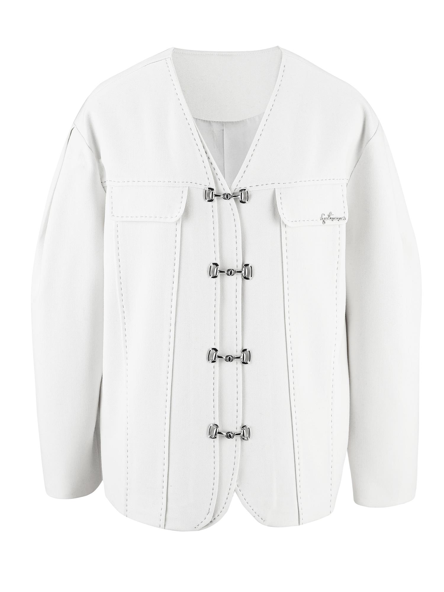 Soote Season 原创小众新中式夹克弧形袖设计象牙白无领西装外套