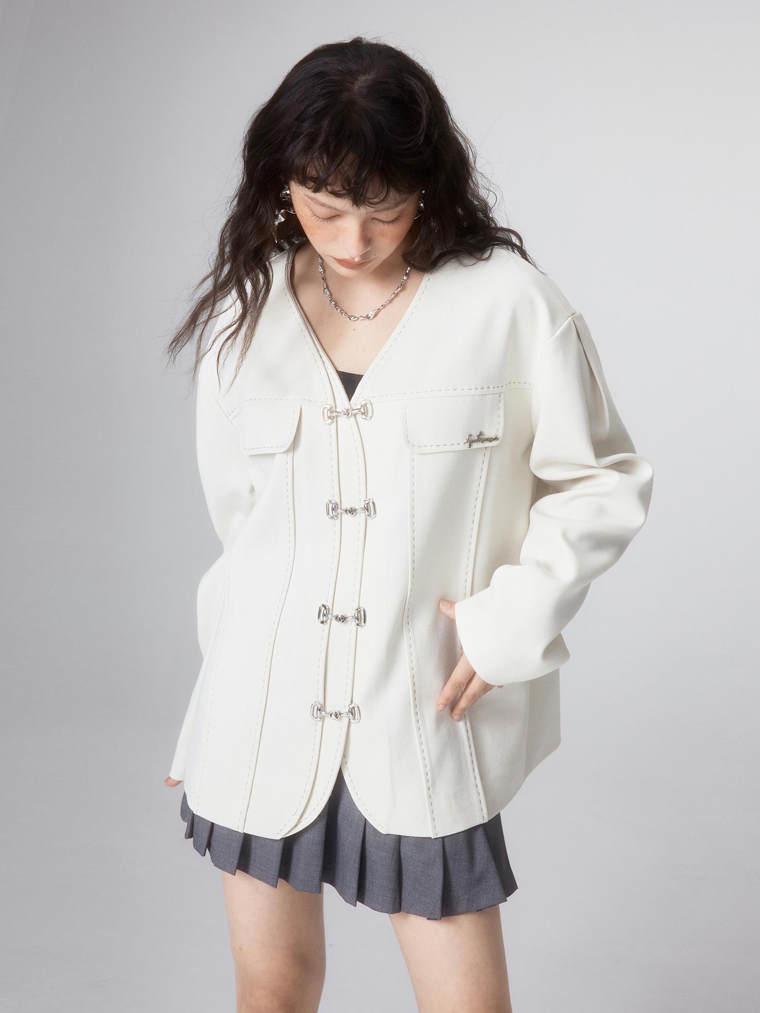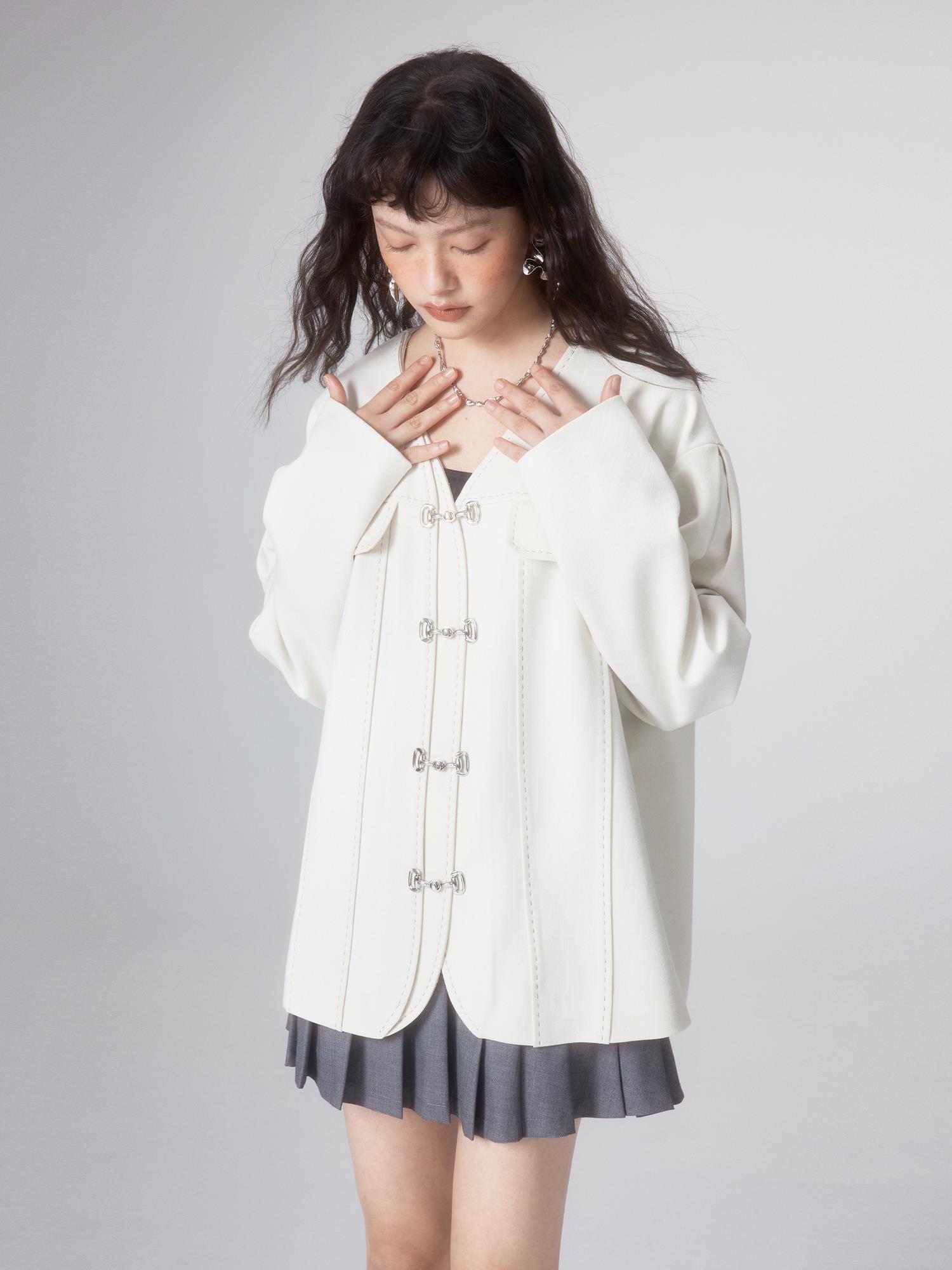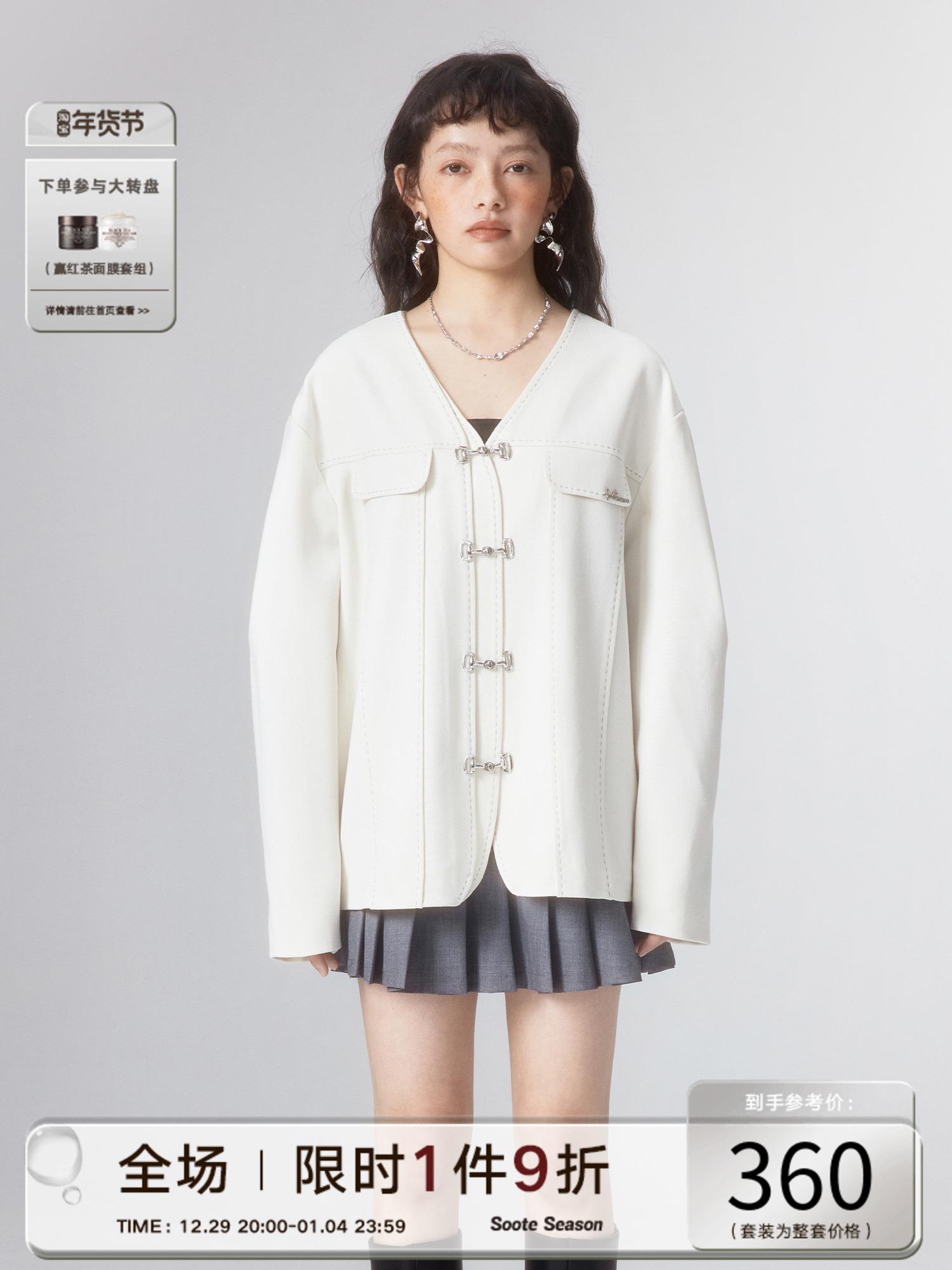 动漫周边 > 服饰 > Soote Season 原创小众新中式夹克弧形袖设计象牙白无领西装外套