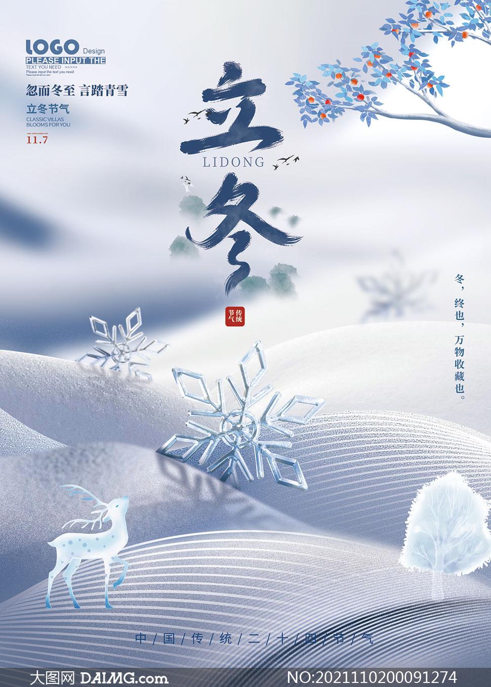蓝色清新立冬节气海报