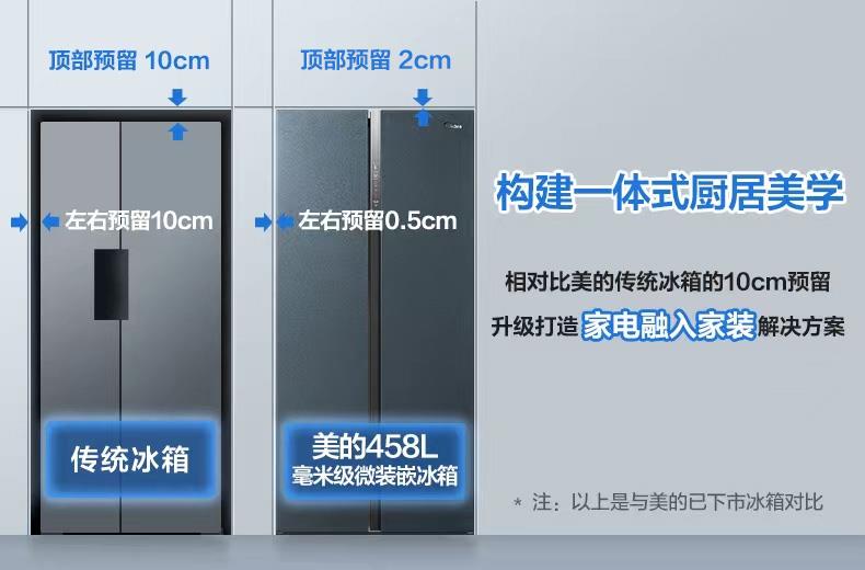 美的双对开门电冰箱零全嵌入式家用一级节能效风冷无霜超薄款458L