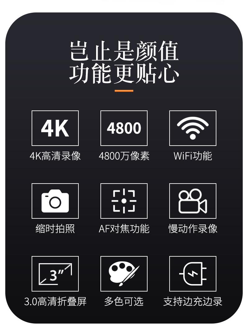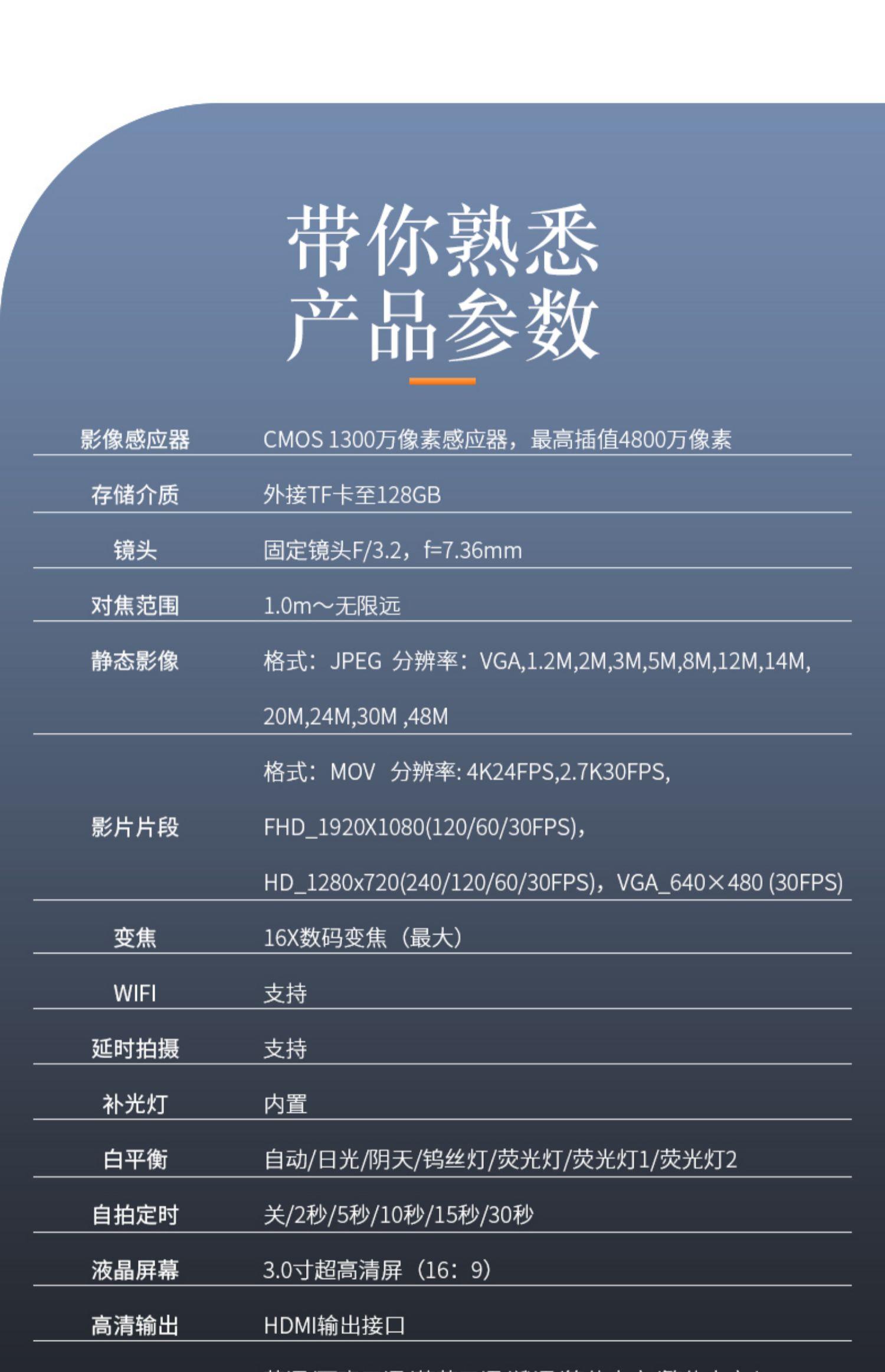 有效像素:2000万以上防抖性能:电子防抖高清摄像:4K(3840x2160)