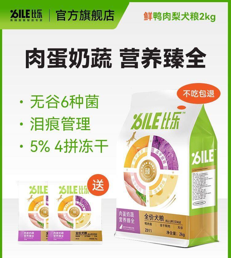 是否进口:否适用犬体型:通用型食品口味:【鸭肉梨】泪痕管理(送体验装100g) 【牛肉牛油果】营养皮毛(送体验装100g) 【鸭肉梨】2袋+【牛肉牛油果】1袋 【鸭肉梨】1袋+【牛肉牛油果】2袋