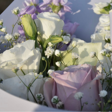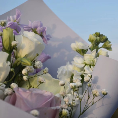 搭配:白洋桔梗、紫玫瑰、白风信子、紫风信子