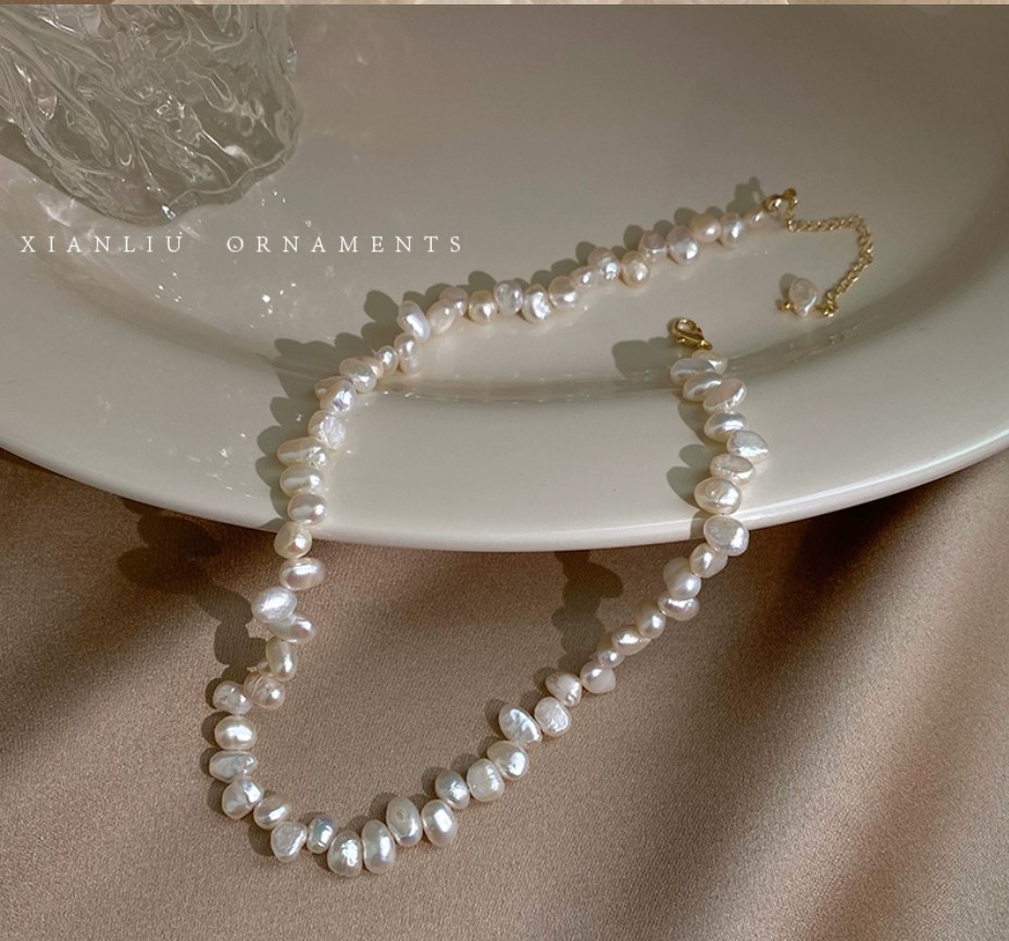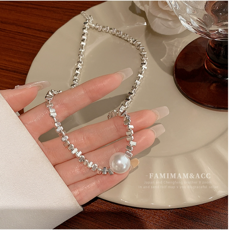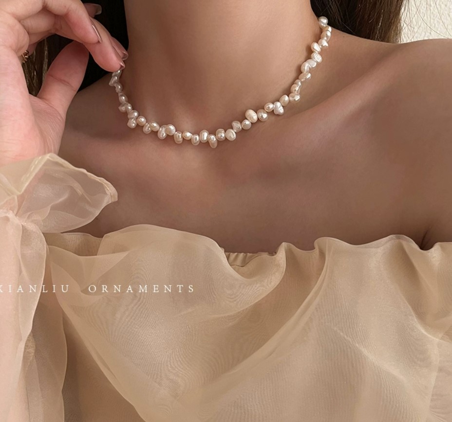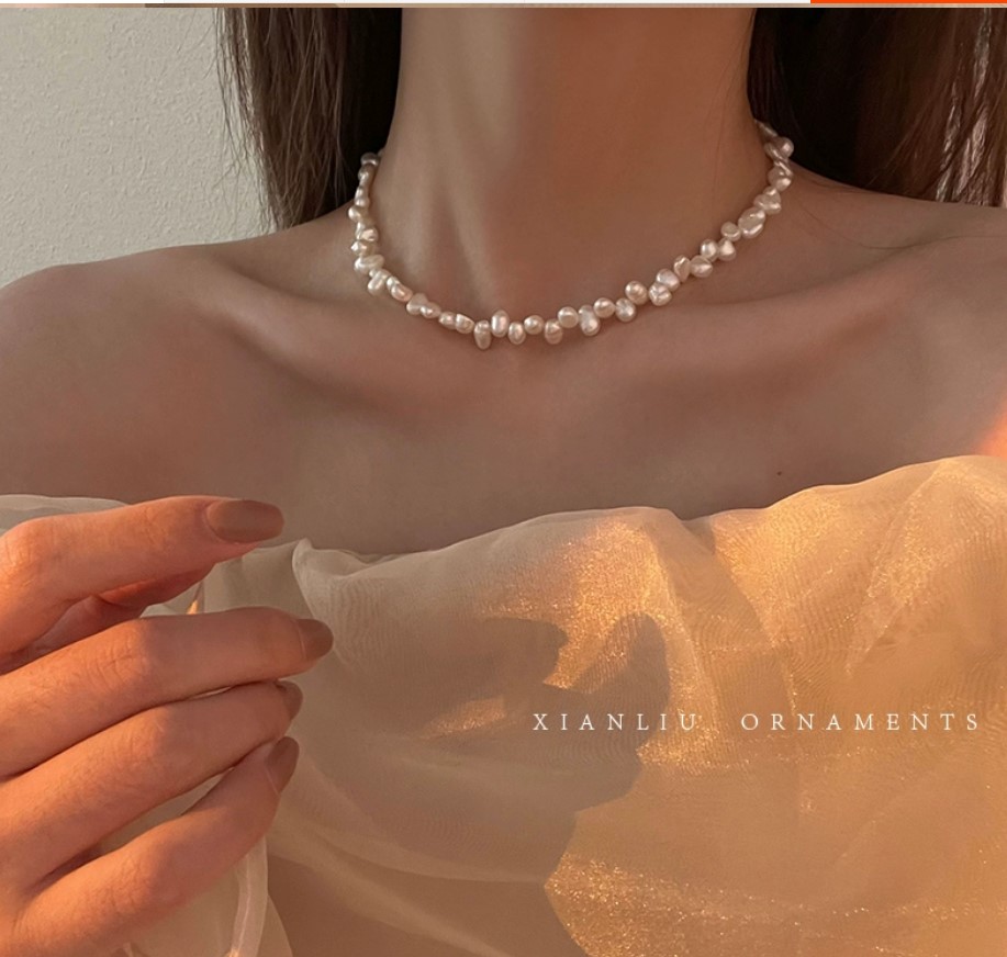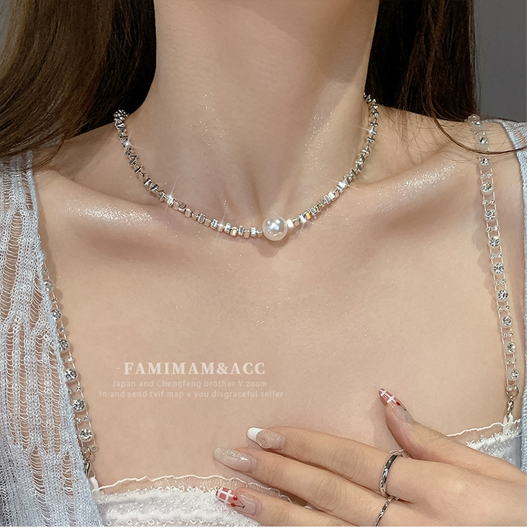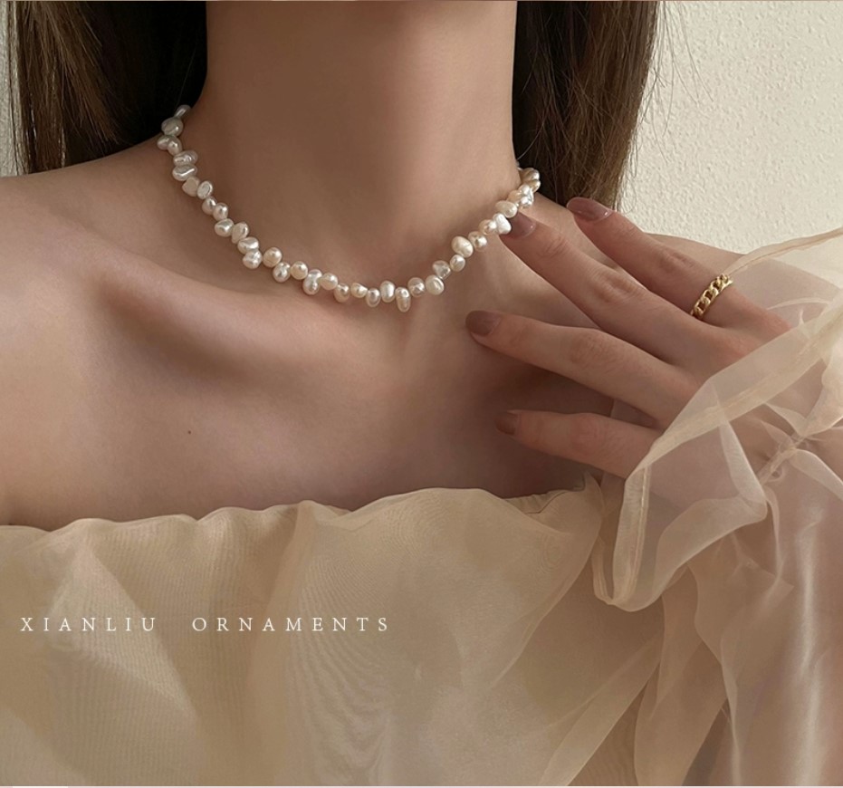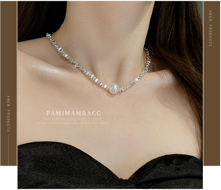 碎银子单颗珍珠项链女2023新款爆款网红轻奢小众高级感颈链锁骨链