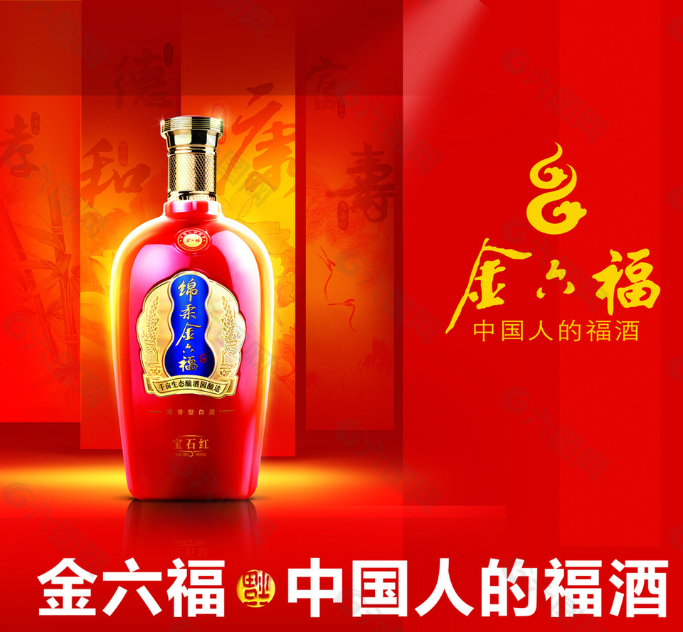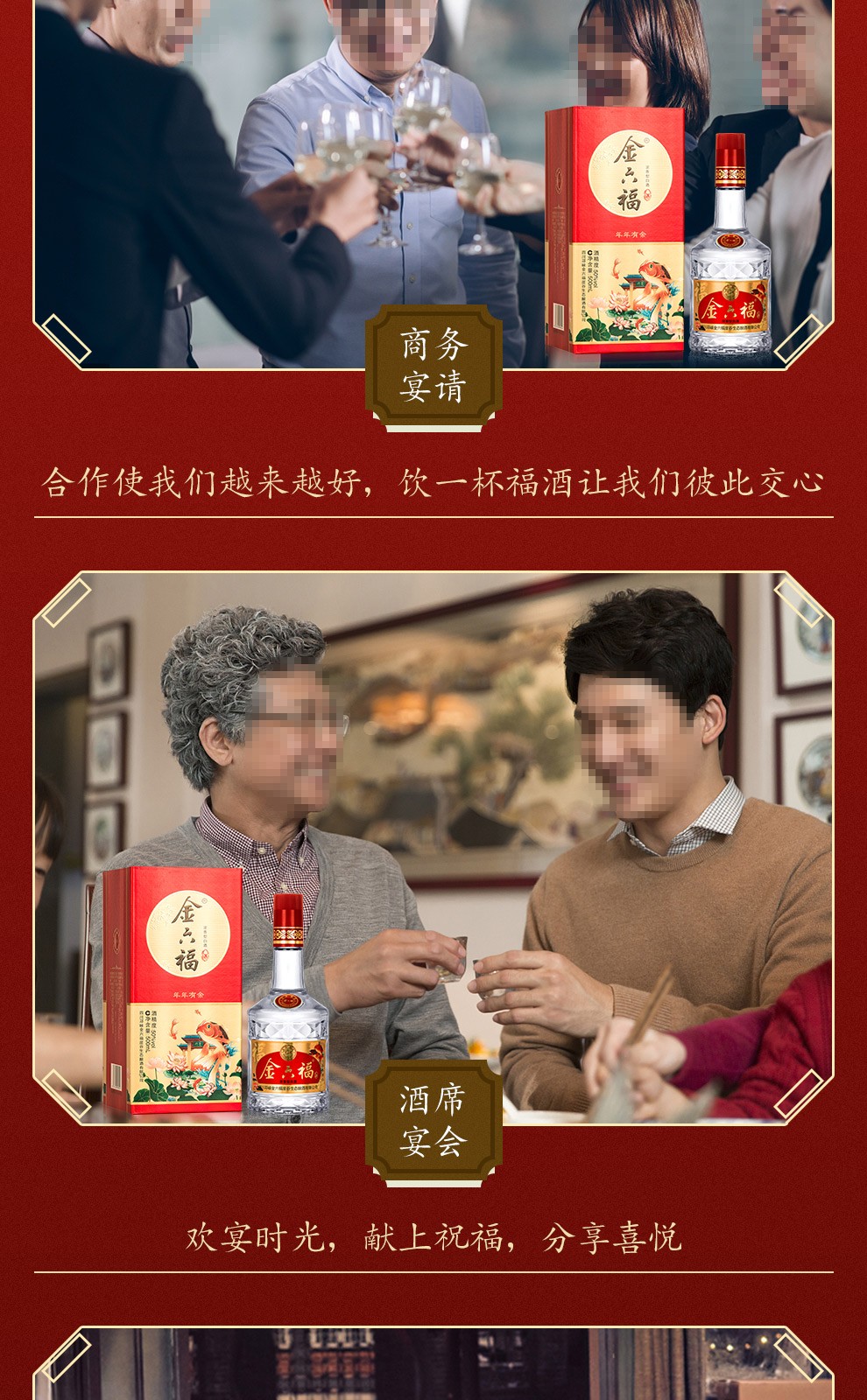 金六福传承·浓香之源,夫六福者,一曰长寿福;二曰富裕福,三曰康宁福;四曰美德福;五曰和合福;六曰子孝福。