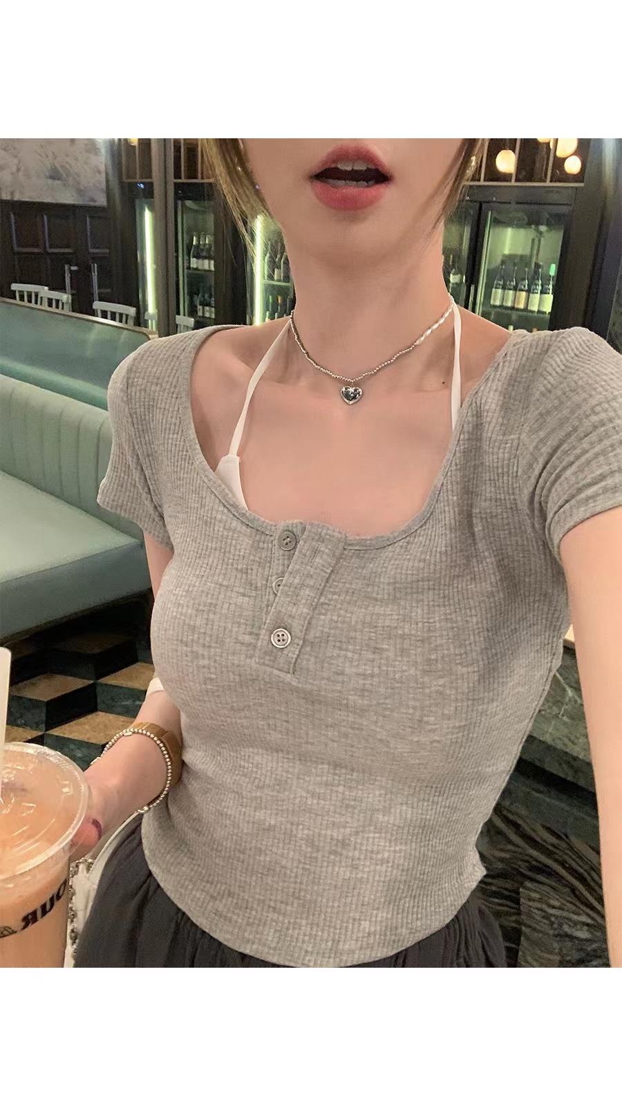 还在u领基础上增加了纽扣设计 纯欲感拉满