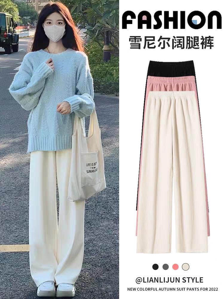 雪尼尔阔腿裤女秋冬加绒高腰宽松显瘦垂坠感