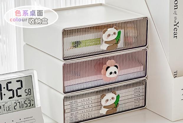 奶油色系桌面收纳盒透明抽屉式大容量书桌文具杂物整理盒子