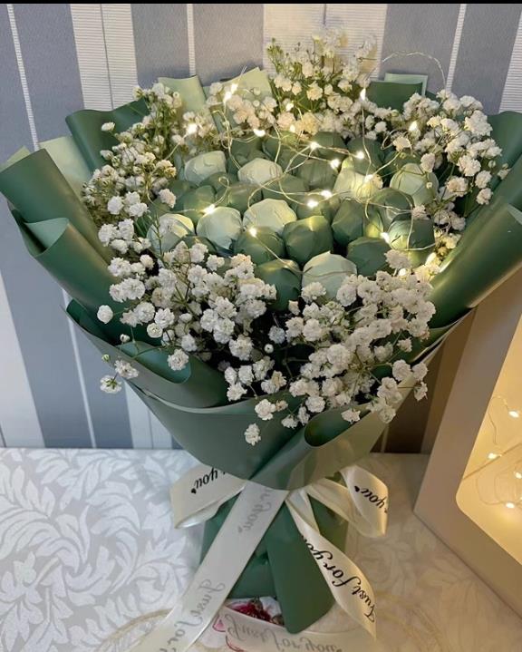 白色满天星搭配绿色糖果,超级适合送给朋友