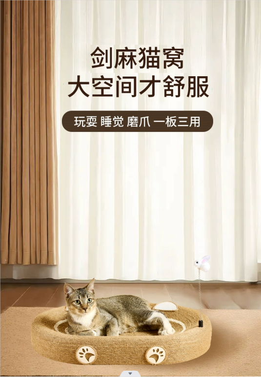 剑麻猫窝,玩耍睡觉磨爪,一板三用。