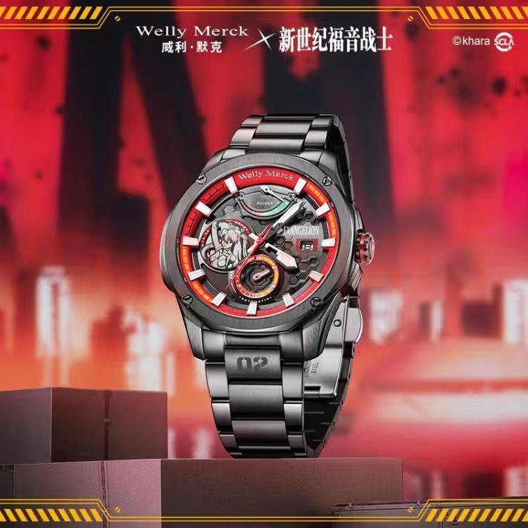 商品名称:welly merck威利默克EVA联名手表轻奢男士手表机械表男运动百搭潮流WM手表 初号机 黑紫色 机械钢带