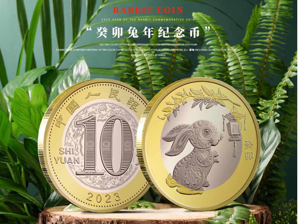 中国人民银行发行2023中国癸卯(兔)年金银纪念币。 该纪念币正面图案为中华人民共和国国徽,衬以中国传统吉祥纹饰,并刊国名、年号。 背面图案则可爱的兔子形象,令人印象深刻。